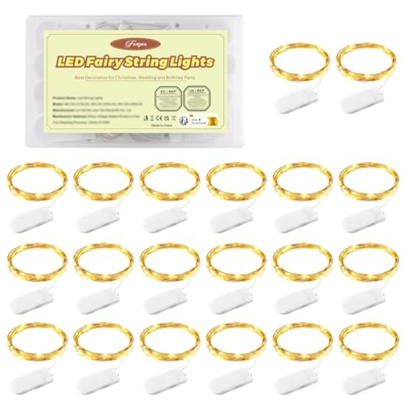 - Set includes 20 packs of 1-metre strings with 10 warm white LED lights each.