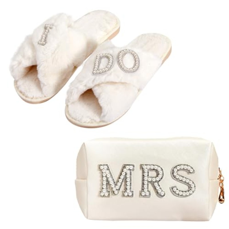 - Includes 1× "MRS" pearl makeup bag and 1× "I Do" bridal slippers
