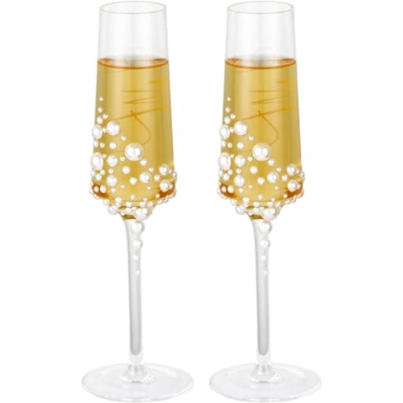 Elegant Set of 2 Pearl-Embellished Wedding Champagne Glasses
