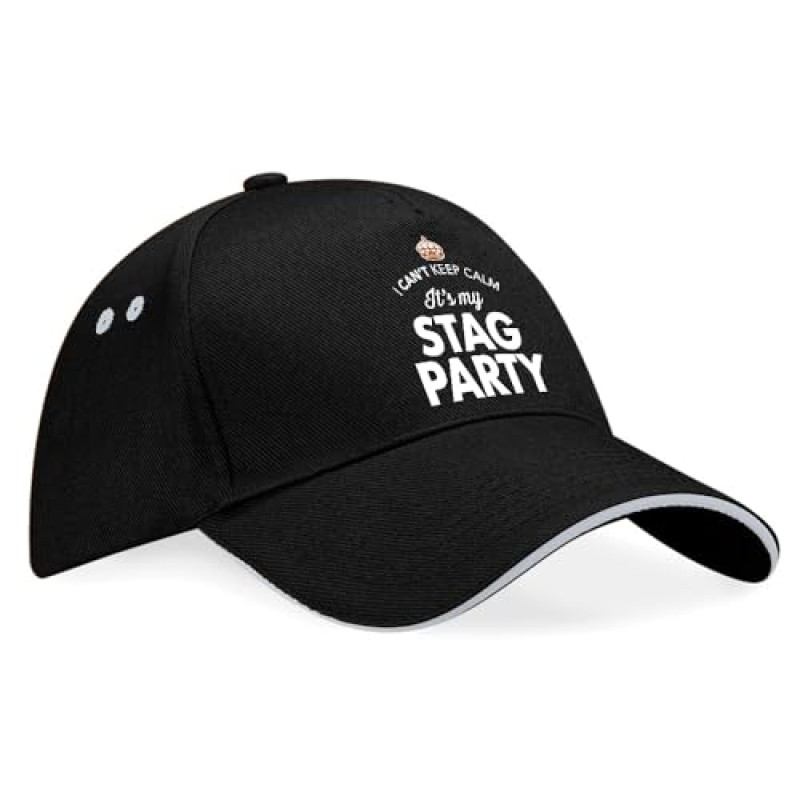 This 100% natural cotton baseball cap offers a thoughtful and practical gift option for the groom and his party to wear during stag celebrations and on the wedding day. Designed with comfort and breathability in mind, the cap features ventilation eyelets and an adjustable size for a personalised fit. Its tasteful design communicates a lighthearted message suitable for pre-wedding festivities such as stag nights while serving as a keepsake to remember the occasion.