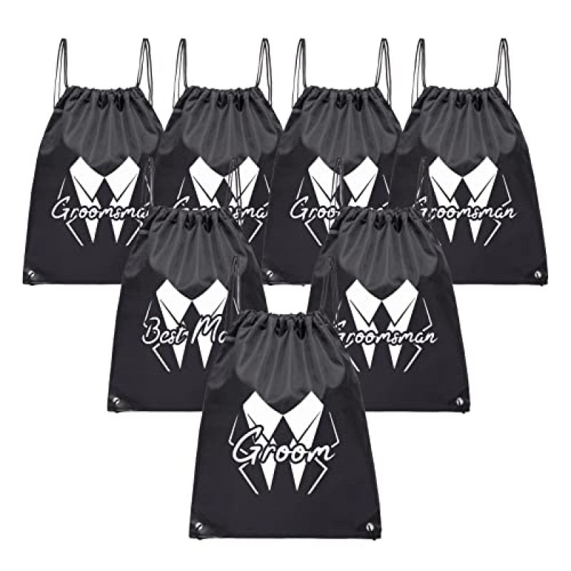 - Set includes 7 drawstring bags: 1 groom, 1 best man, and 5 groomsmen bags