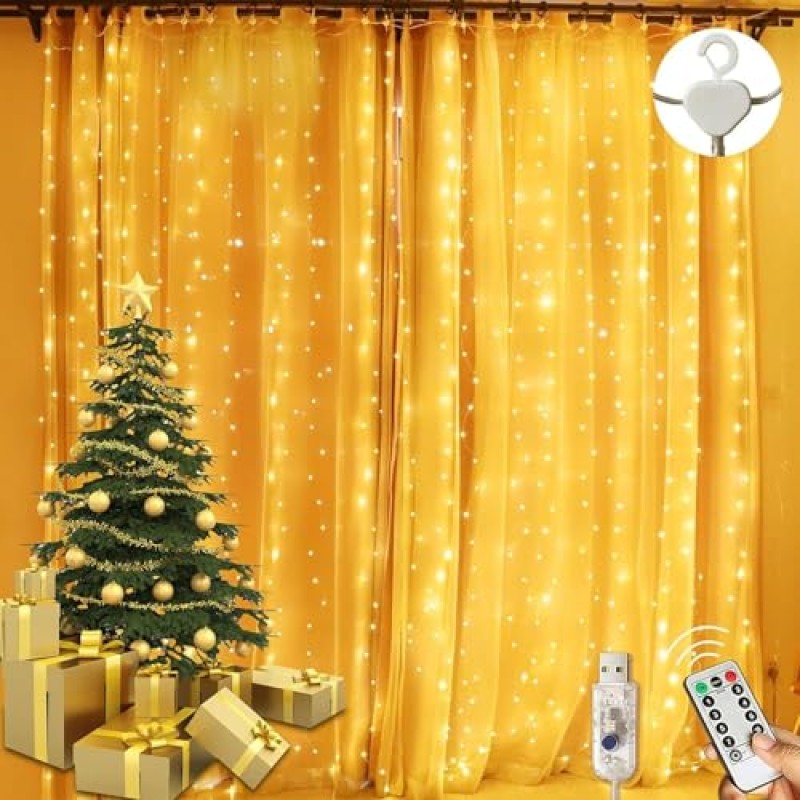 LITYBY USB Curtain Fairy Lights with 300 LEDs and Remote