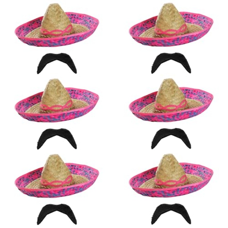 - Includes: Pink embroidered sombrero, fake moustache, and cigar accessory