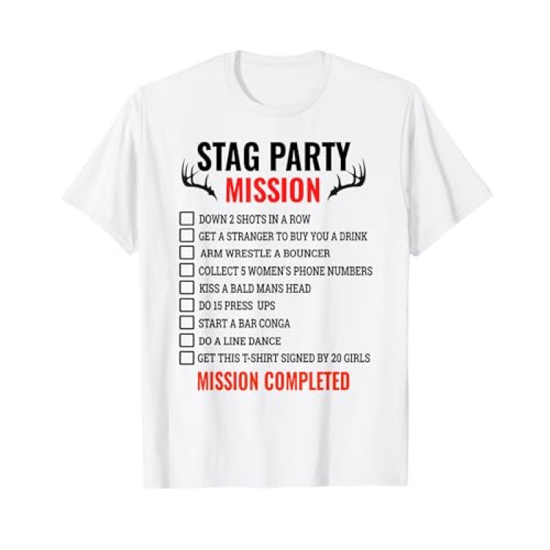 This tailored t-shirt is designed specifically for the groom and his party to bring an element of light-hearted fun to the stag do. Featuring a printed checklist of nine playful dares and challenges, it provides a simple way to engage the groom, best man, and groomsmen throughout the celebrations. Its classic fit ensures comfortable wear during lively festivities, while the lightweight fabric allows ease of movement whether at casual venues or outdoor activities. Beyond being a garment, it serves as an interactive game to enhance the stag weekend experience, encouraging camaraderie and memorable moments before the big day.