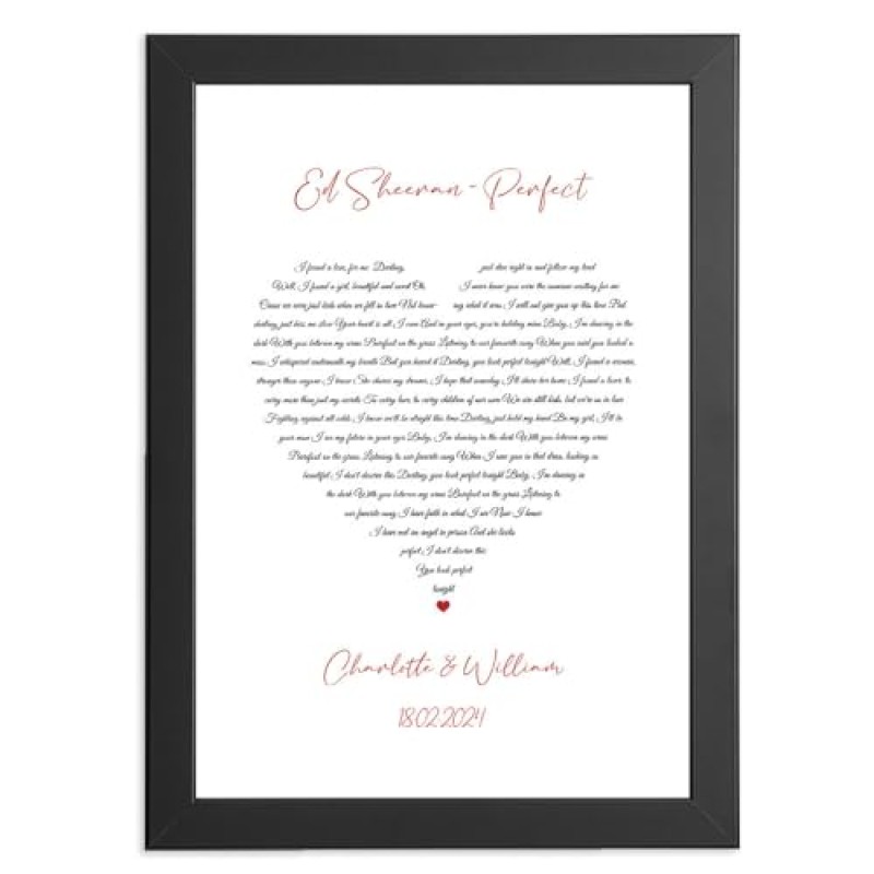 This personalised print showcases your chosen song lyrics or special text on luxurious silk card, creating a unique and heartfelt keepsake for wedding celebrations. Thoughtfully designed to express enduring love, it serves as a meaningful gift from a spouse or partner, suitable for the wedding day or as a cherished memento thereafter. Available in various sizes, it can be framed in quality wooden frames crafted in Britain, offering both hanging and free-standing display options. The option for elegant gift wrapping adds a refined finishing touch, making it ideal as a gift for the bride, groom, or couple to mark the occasion with a lasting memory.