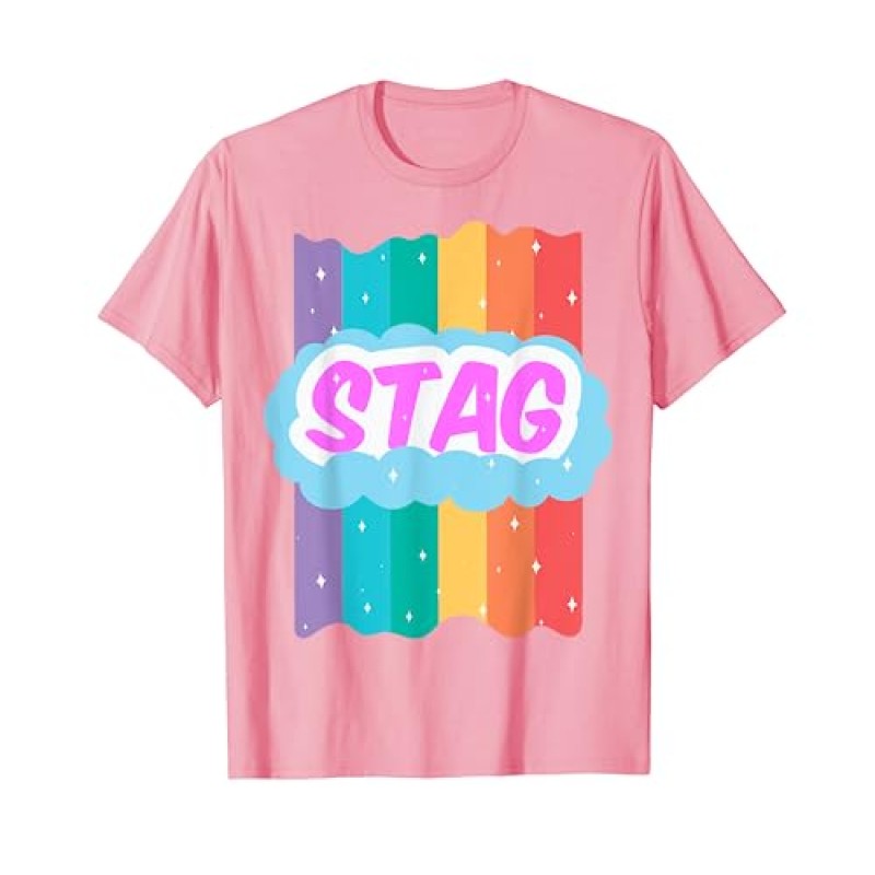 Rainbow Gay Flag Stag Do T-Shirt with Magical Cloud