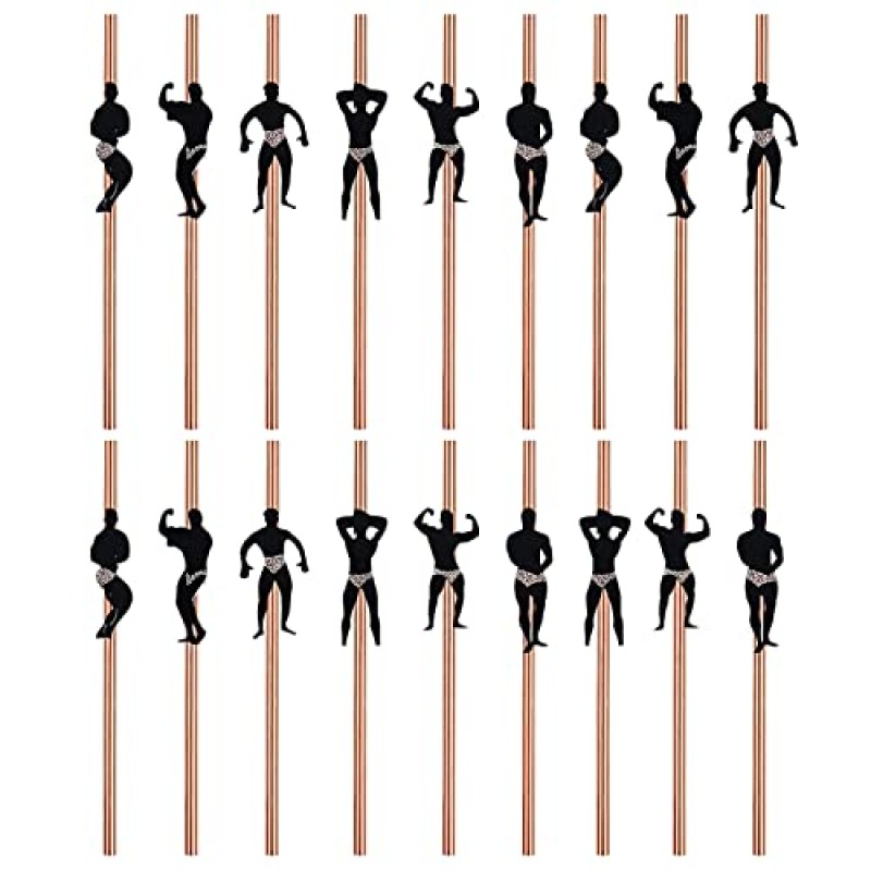 These rose gold paper cocktail straws provide a playful yet tasteful touch to wedding-related celebrations, particularly suitable for hen parties and bridal showers. Crafted from sturdy, food-safe paper with non-toxic ink, they maintain their structure without becoming soggy, ensuring a neat and enjoyable drinking experience. Each straw features one of six elegant dancer poses printed in black shiny paper with glittery rose gold confetti accents, adding a subtle element of festive charm without overwhelming the décor.