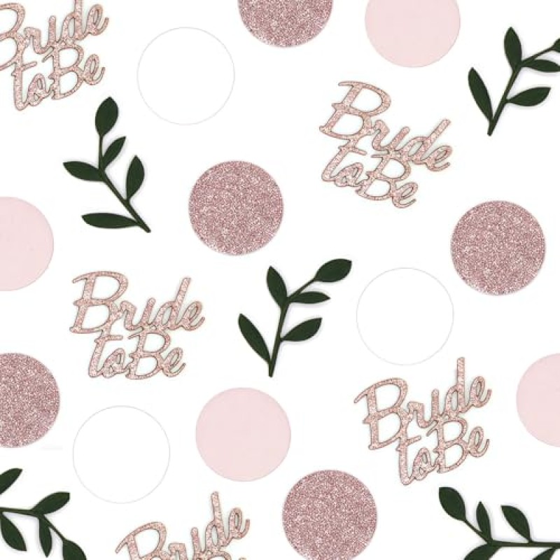 This set of rose gold hen party confetti offers a tasteful decorative accent for wedding celebrations and related events. Crafted from high-quality paper with exquisite attention to detail, each piece features a smooth, flat finish with vibrant colours and clear patterns including circles, leaves, and "Bride to Be" motifs. The approximately 100 pieces provide an elegant sprinkle of charm, ideal for enhancing tables at hen parties, bridal showers, engagement celebrations, or the wedding reception itself. Lightweight and durable, this confetti adds a subtle, romantic shimmer that complements the day's styling without overwhelming other décor. It may be gently scattered across surfaces during the reception or incorporated into personalised gift wrapping for bridesmaids. Its delicate construction allows for reuse should you wish to keep part of the ambiance beyond the event. This confetti is a refined choice for couples and planners seeking to introduce a delicate decorative detail that subtly supports the celebratory atmosphere.