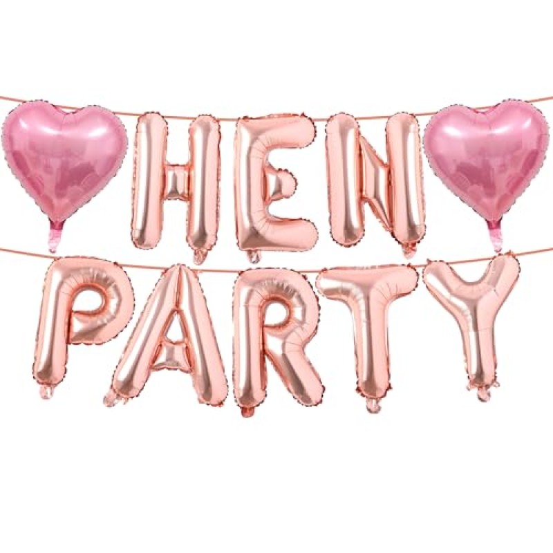 - Includes 8 foil balloons spelling 'HEN' and 2 heart-shaped foil balloons
