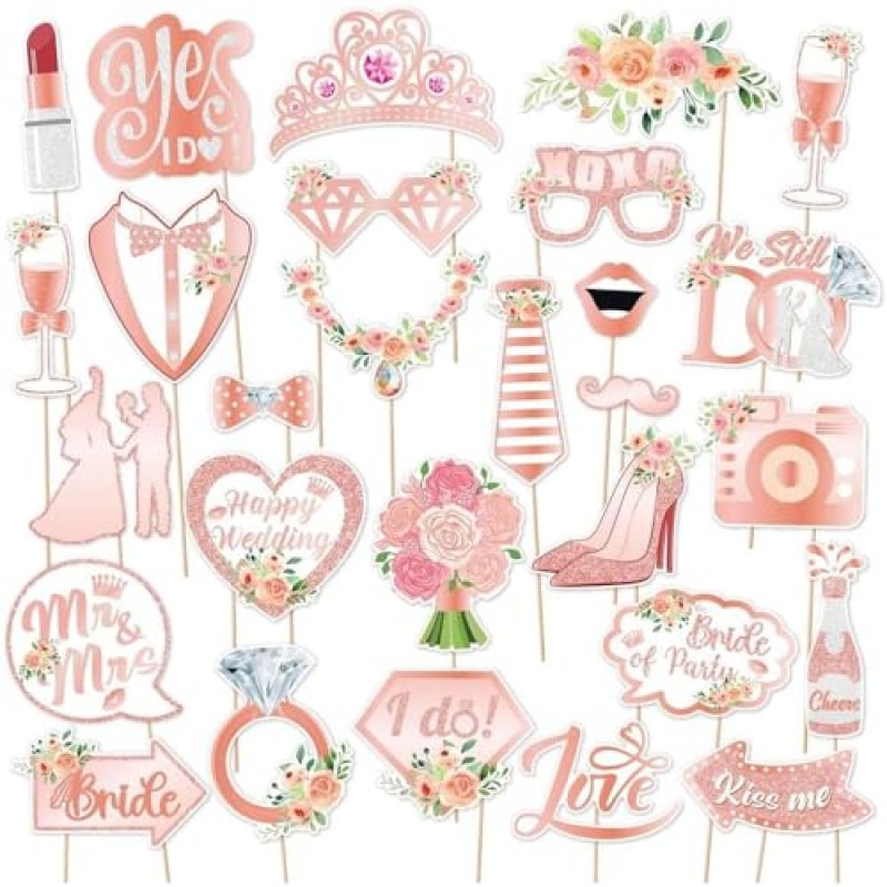Rose Gold Photo Booth Props Kit for Bridal Celebrations