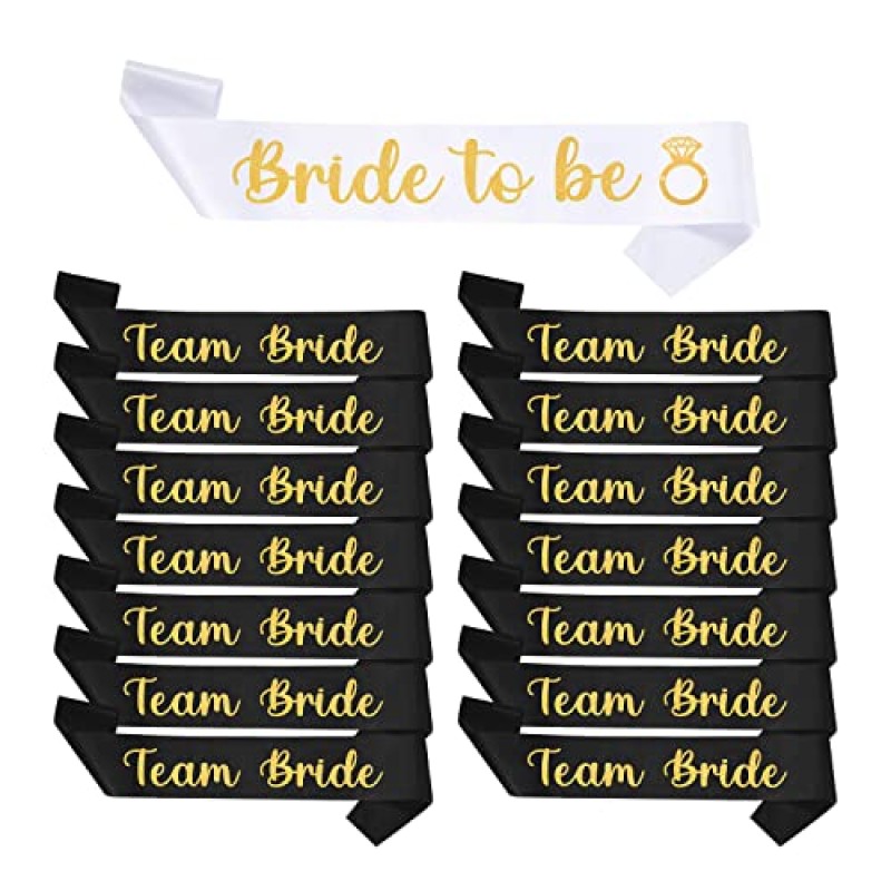 - Set contains 1 white 'bride to be' sash and 14 black team bride sashes, total 15 pieces