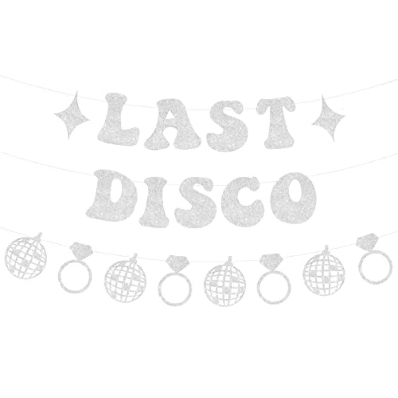 - Includes 1 glitter 'Last Disco' banner and 1 garland featuring diamond ring and disco ball motifs.