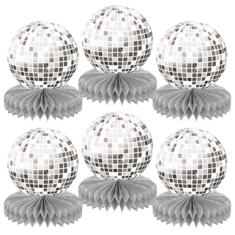 This silver honeycomb disco centrepiece set comprises six intricately designed table decorations that bring a subtle shimmer and vintage charm to wedding festivities. Crafted from high-quality cardboard and paper, these centrepieces offer durable decoration that withstands the pace of a lively event without risk of damage or sharp fragments. Their disco-inspired style captures flickering light to enhance the ambient glow, making them particularly suitable for contemporary receptions or evening celebrations.
