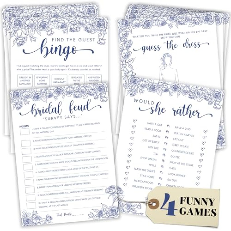 - Includes 50 cards featuring 4 unique bridal shower games.