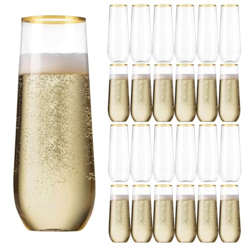 Sythrix Gold-Rimmed Plastic Champagne Flutes, 25-Pack